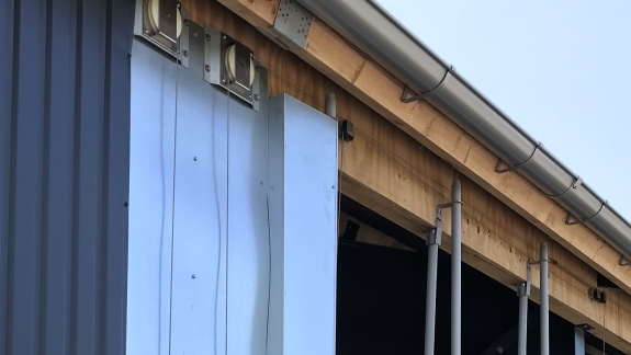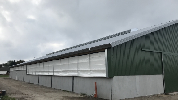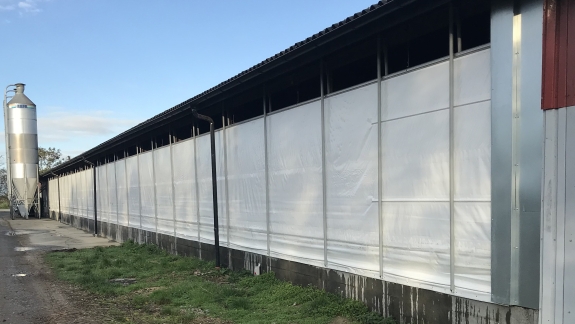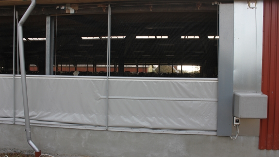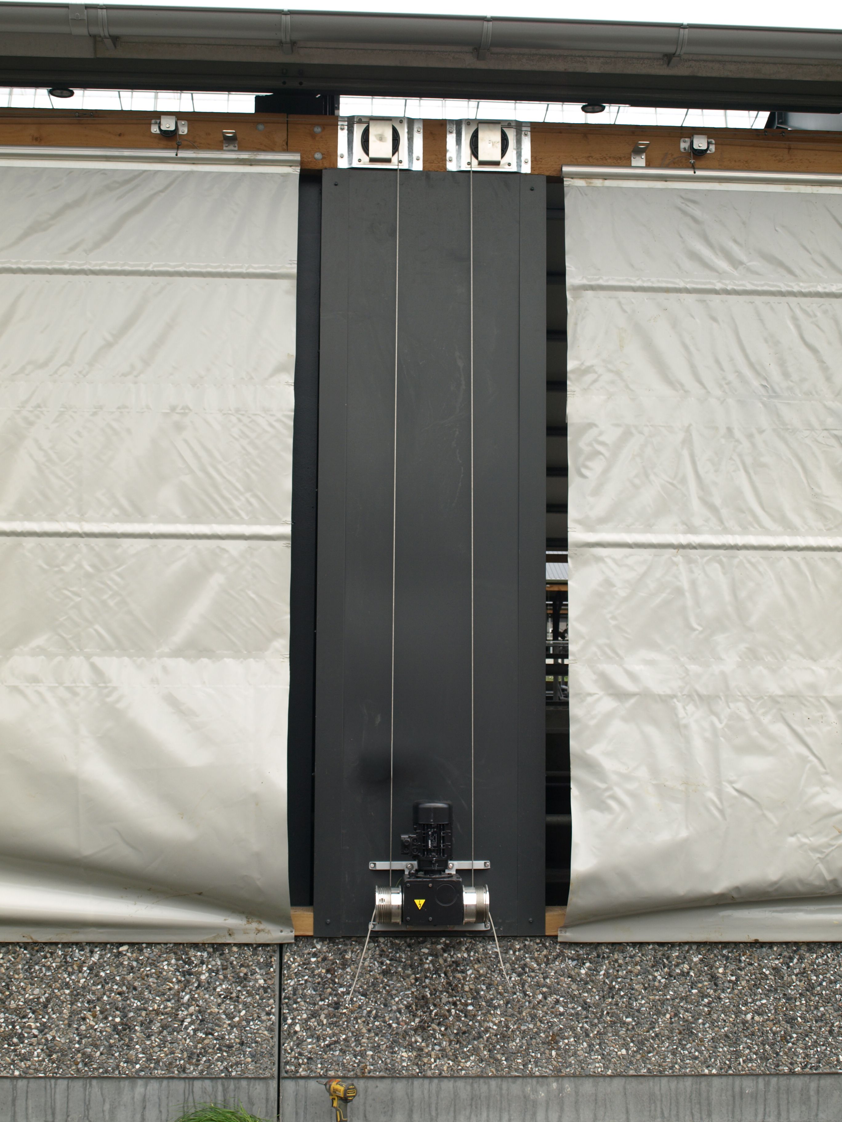 Farve hvid eller grå brandhæmmende presenning. Max. højde 3 m. - længde afhænger af højde. Motor ende- eller midtplaceres.