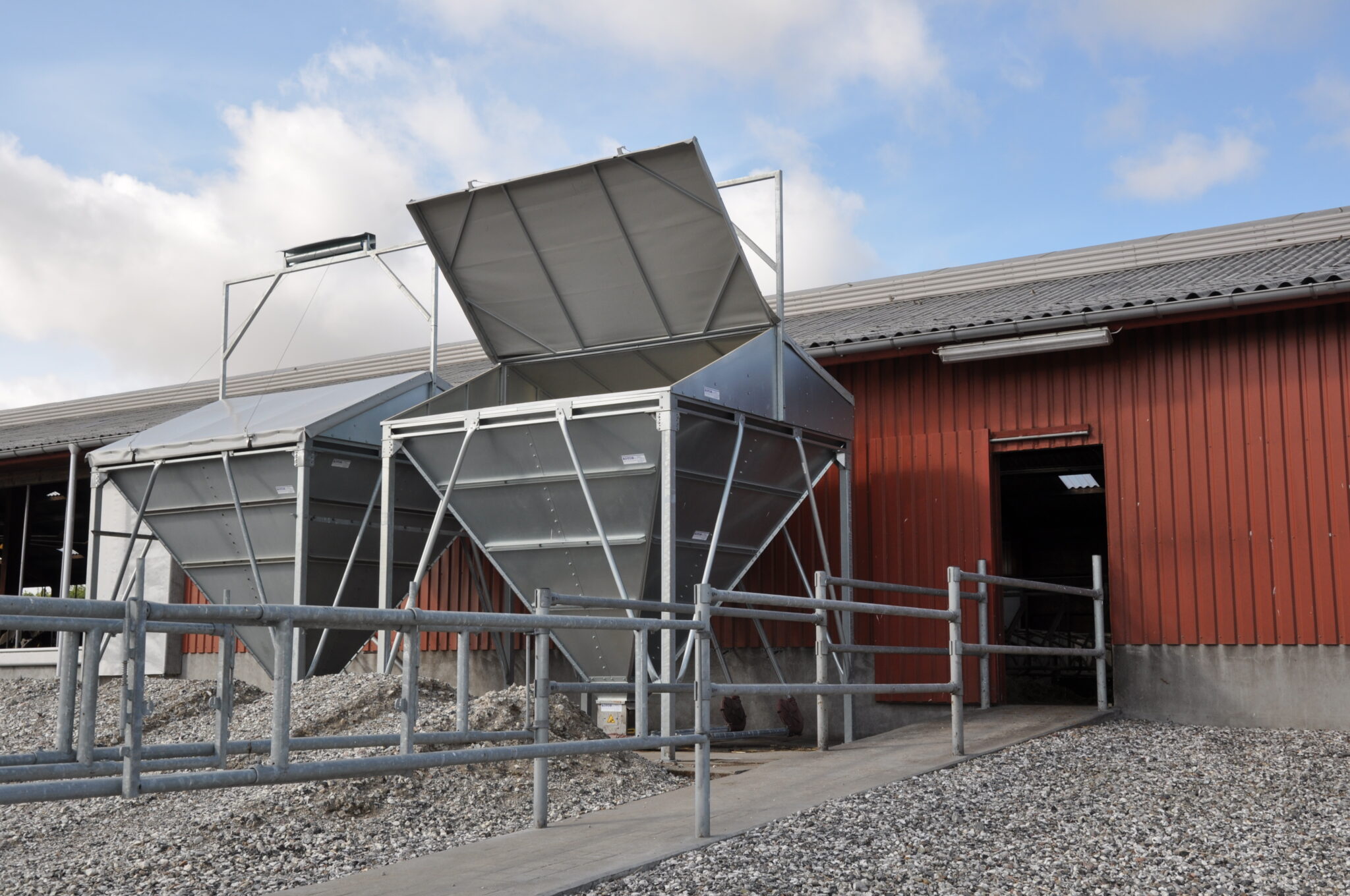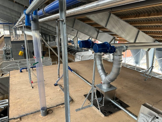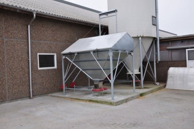 Foderstreng til opfyldning af f.eks. malkerobotter med kraftfoder, valset korn, sojaskrå og lignende.