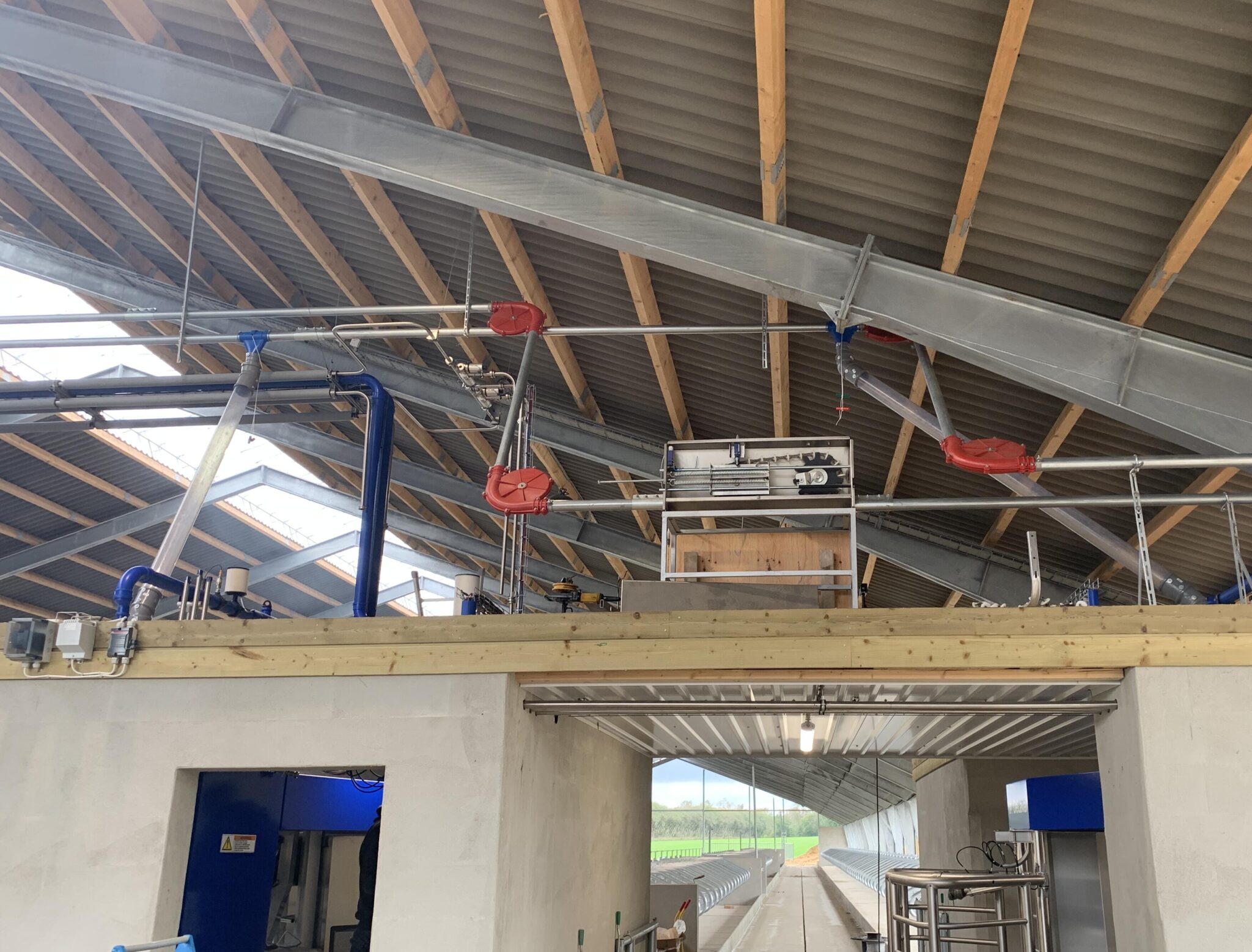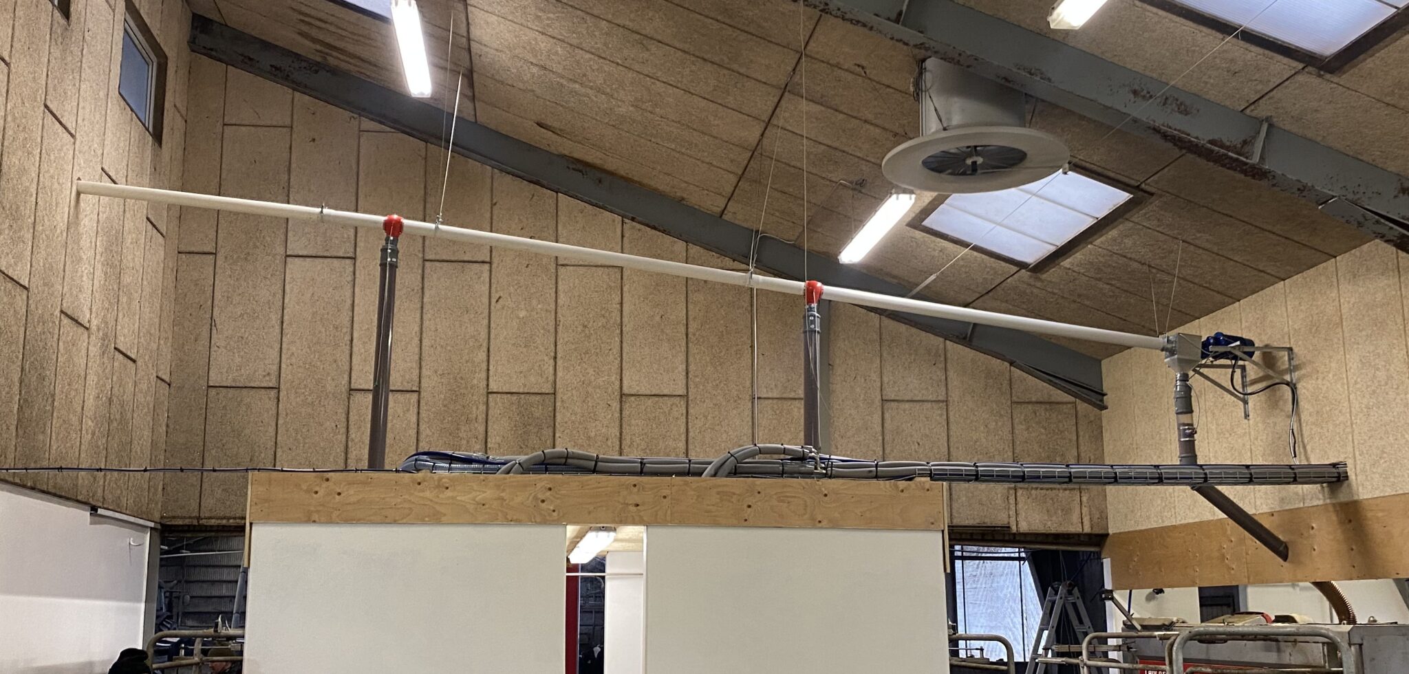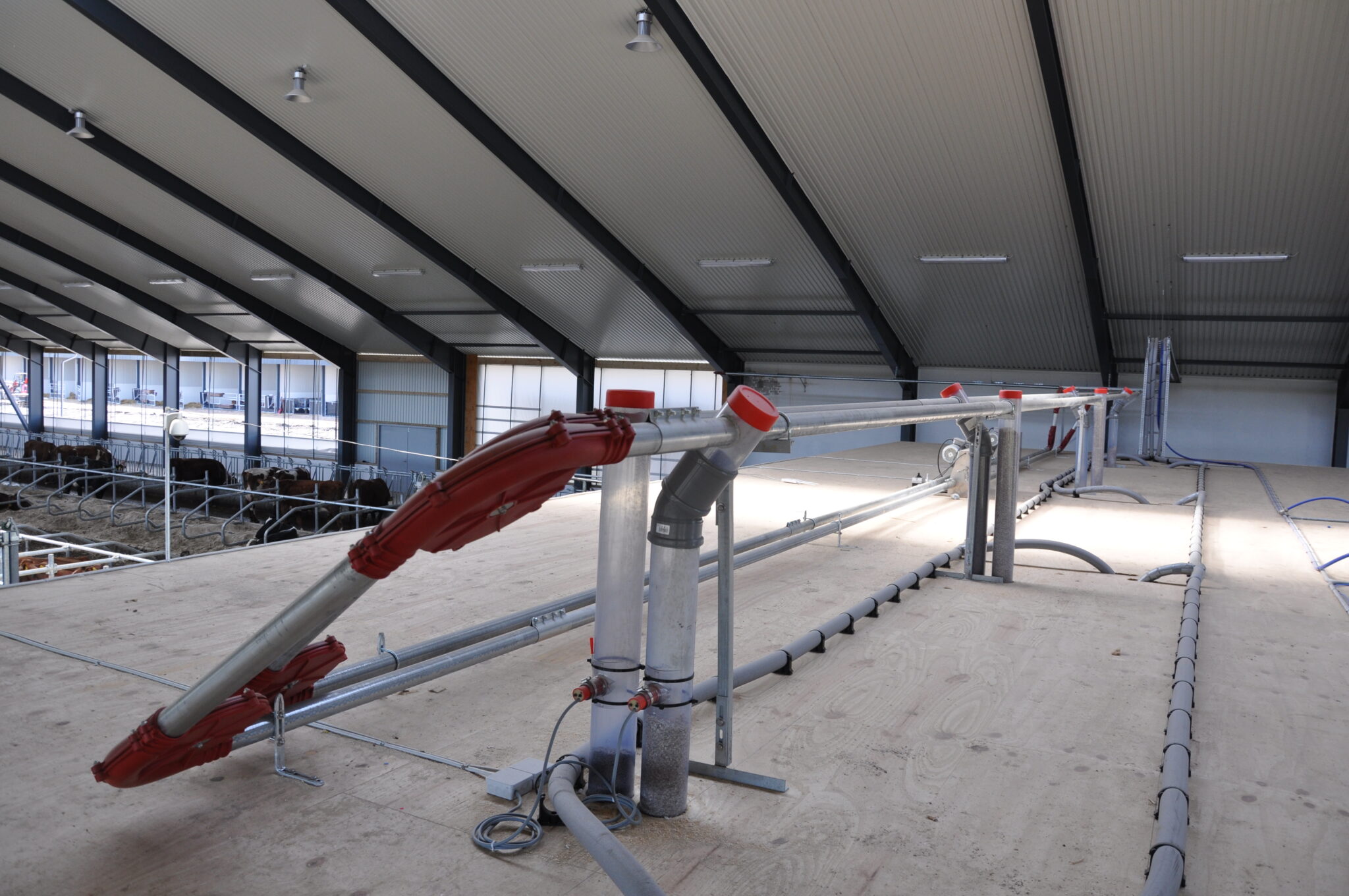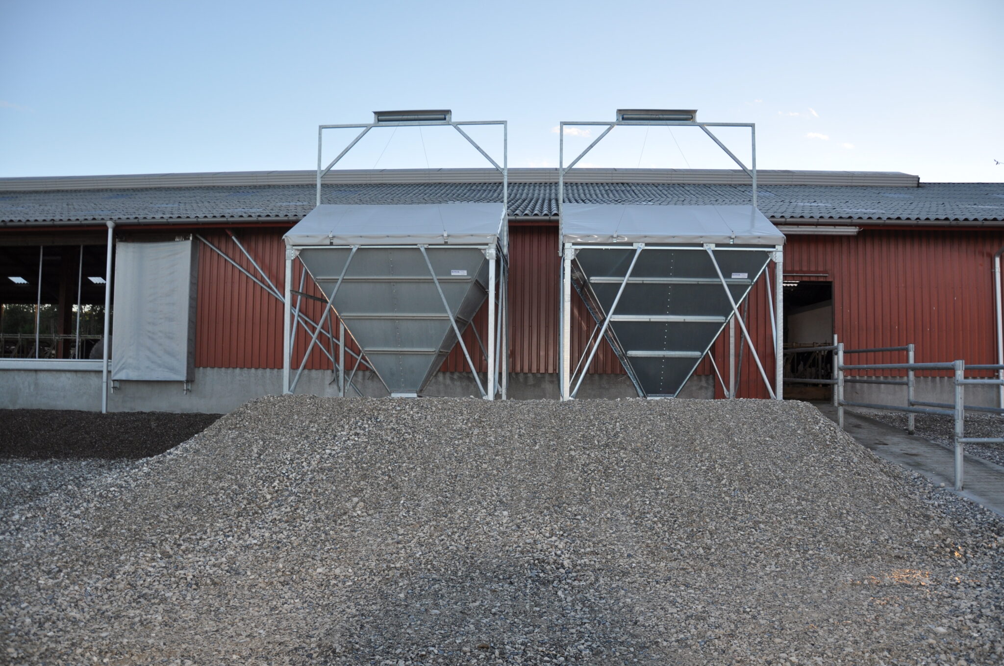 Anlægget består af 60 mm. foderstreng med kæde. 90 gr. PVC hjørner med dobbelt kuglelejer.