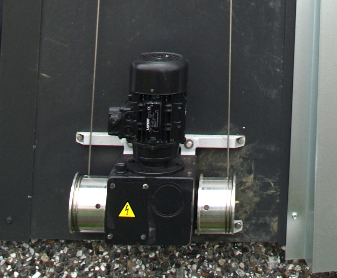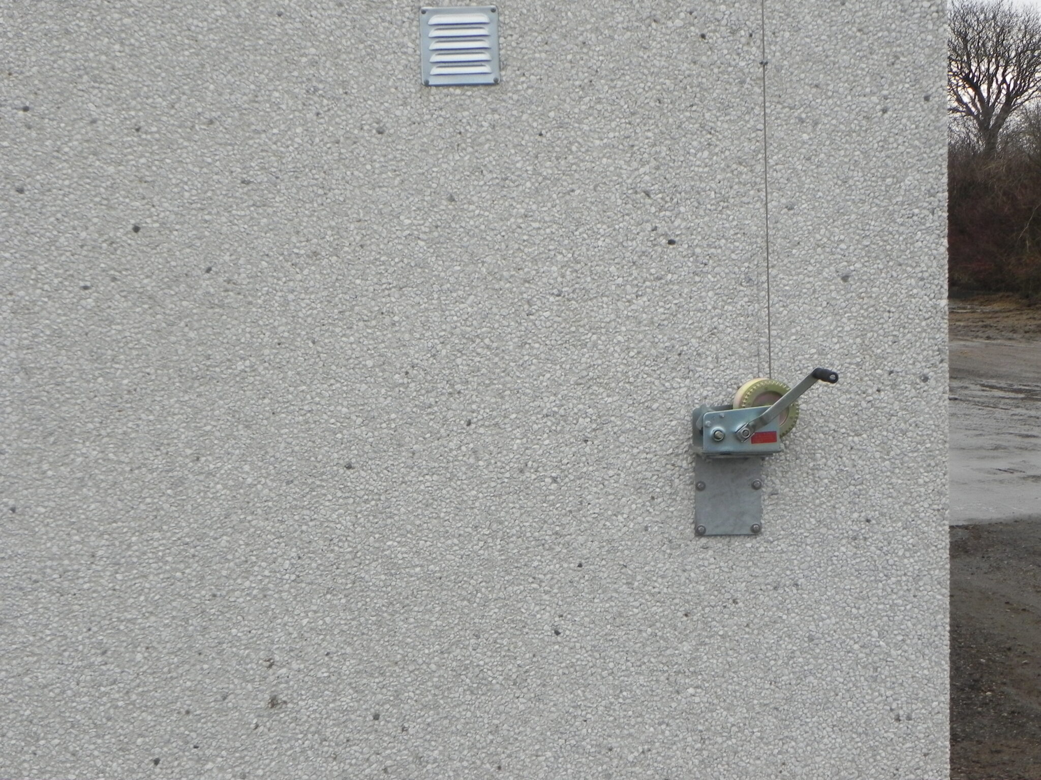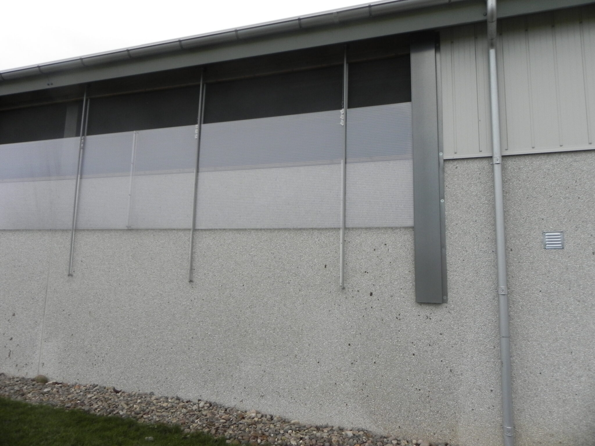 De sænkes ned langs muren under vinduesåbningen og styres af plastikbelagte 1/2″ galvaniserede rør, på muren monteres plastiklister.