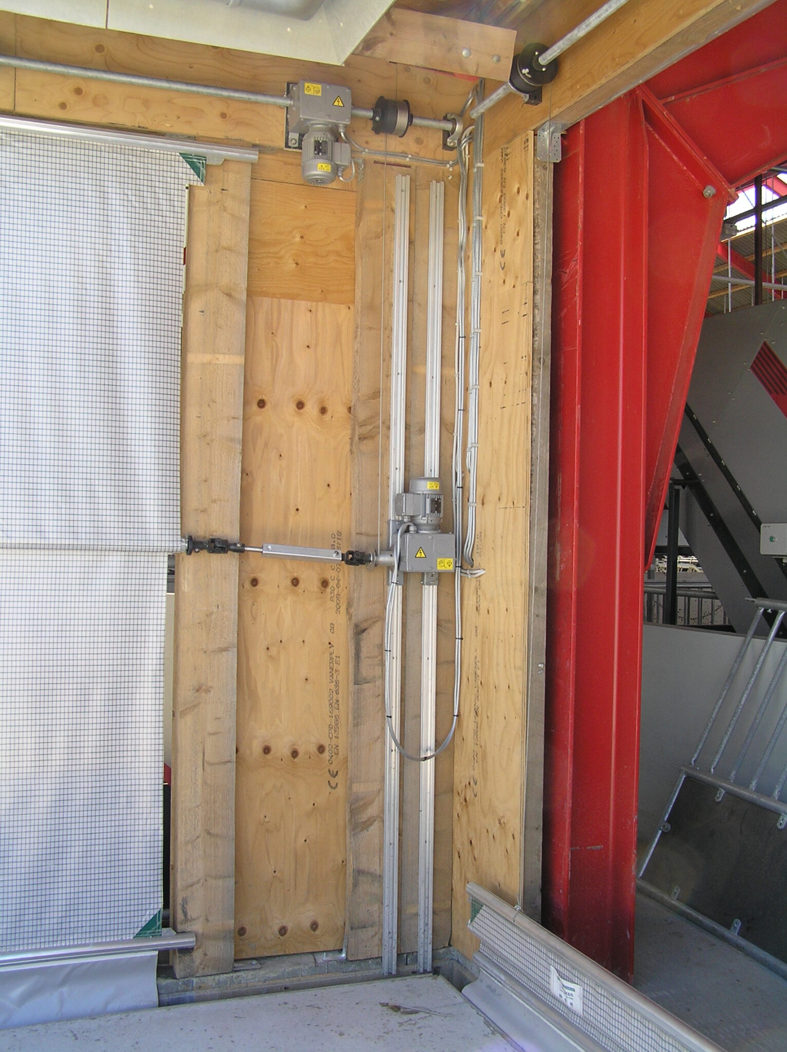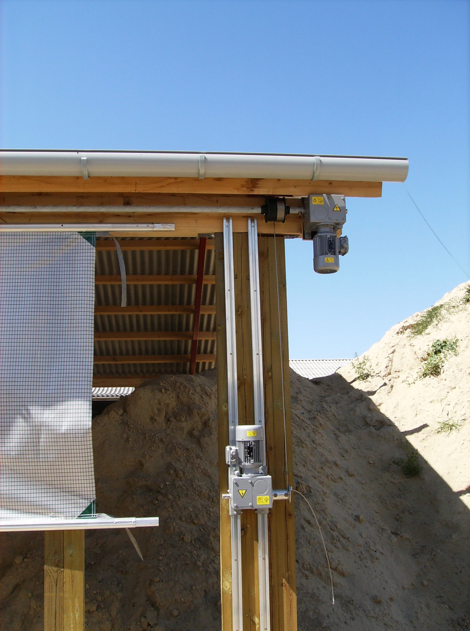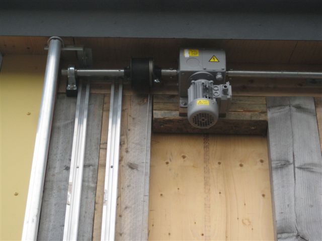Her bliver det midterste rør, der fungerer som oprulningsrør, drevet af en gearmotor der er monteret på et skinnesystem.