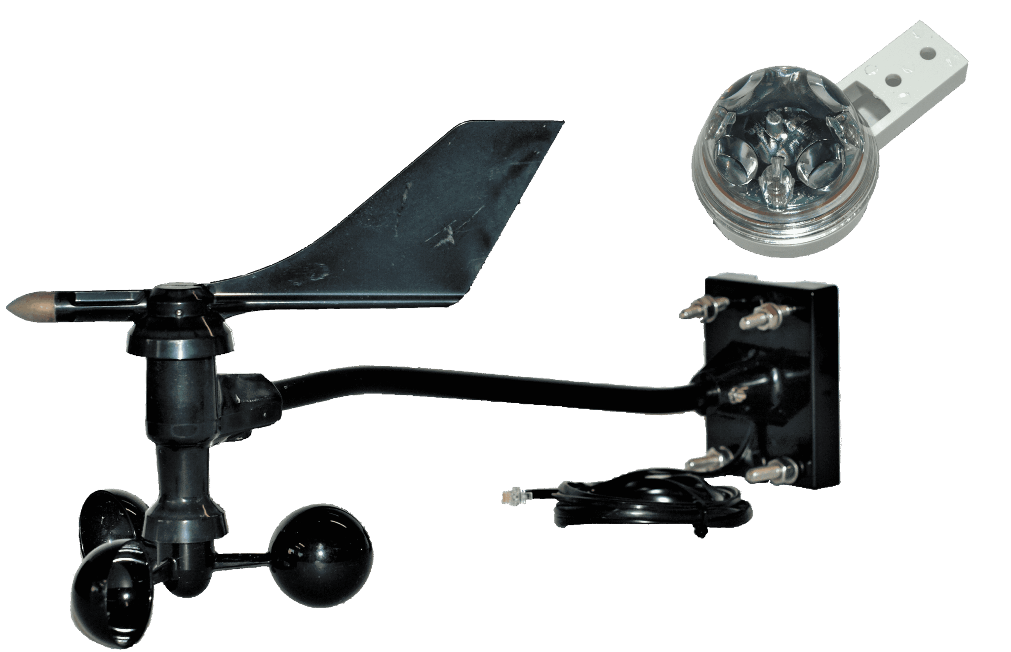 - Leveres standard med 1 indeføler, 1 ude-føler, vejrhane og regnsensor
