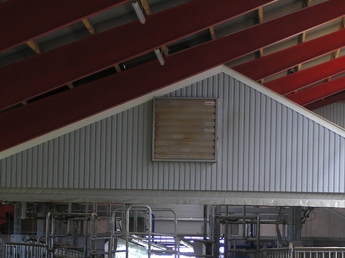 Til kostalde og kornhaller for ekstra ventilation i varme perioder og til fjernelse af fugt. Kan leveres med termostat, manuel styring eller automatisk styring. Leveres også med jalousi / lameller.